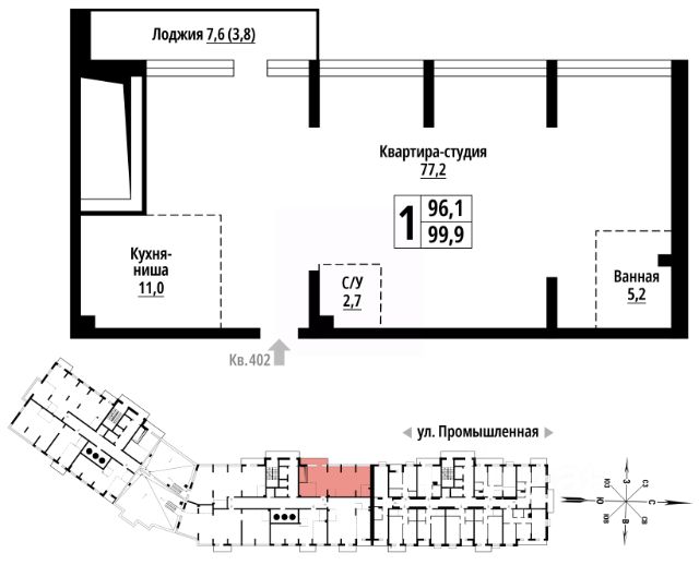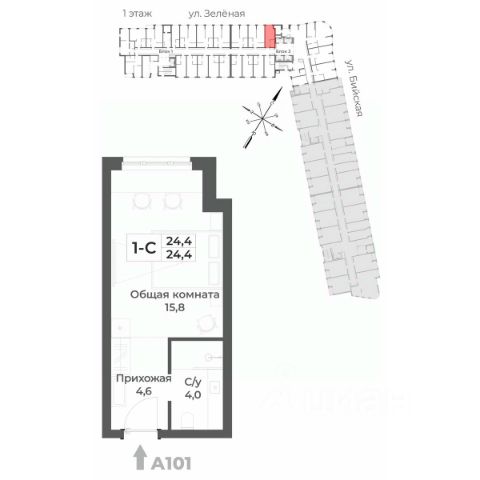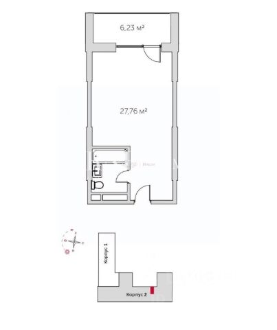 Предлагается к продаже студия в корпусе 2 на 5 этаже восьмиэтажного здания.