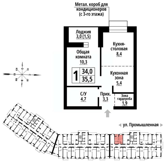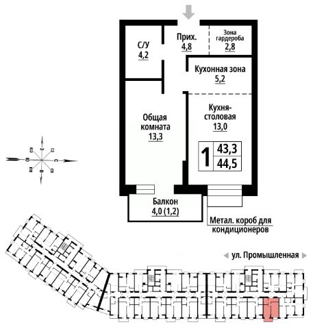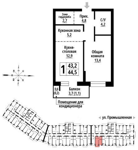 Общая площадь квартиры указана без учета лоджии.