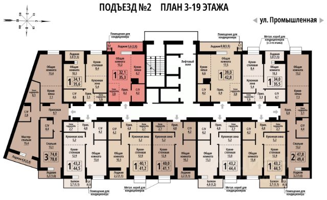 - удобнаяи при этом компактная планировка с просторной кухней-гостиной и квадратной зоной спальни;