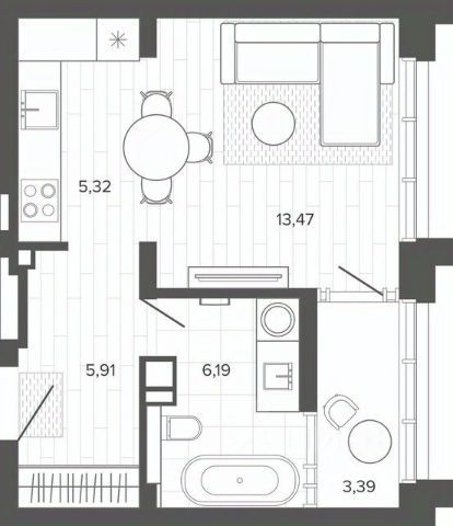Продаётся 1-комнатная квартира в строящемся доме (Искра), срок сдачи: III-кв. 2028, общей площадью 33.91 кв.м., на 5 этаже. Градостроительная идея Градостроительная идея основана на концепции сохранения исторической преемственности места. Как следствие, это определило название проекта - "Искра", которое отражает его значимость и символическую связь с прошлым. Искра станет местом, где история оживёт в новом облике в рамках современной градостроительной концепции. Социальная значимость Проект имеет социальную и патриотическую направленность с сохранением исторической преемственности места. Предусмотрено формирование парковой зоны и активизация жизненного пространства в центре района благодаря важным социальным объектам. Уникальный формат для жизни Жилая башня располагается на стилобате торговой галереи по соседству с офисным зданием и занимает с 3 по 19 этажи. Планировочные решения были разработаны с учетом потребностей современного городского жителя в комфорте и функциональности. Удобная геометрия комнат дополняется оптимизацией пространства благодаря нишам под кухонную зону и отдельным гардеробным. Зеленый сквер В двух шагах от живого комплекса расположился настоящий парк. Благоустройство территории, прилегающей к живому комплексу Искра, направлено на формирование позитивного образа Индустриального района. Проект благоустройства парковой зоны ориентирован на создание комфортной и функциональной городской среды, связывающей пешеходные маршруты обитателей близлежащих жилых комплексов. Интерьеры офисов Дизайн офисов и мест общественного пользования офисной башни выполнен в современной стилистике. Офисы имеют свободную планировку. Внутренняя отделка выполнена в нейтральных оттенках. Потолки в тёмно-графитовом цвете скрывают подвесные коммуникации и при этом обеспечивают лёгкий доступ к их обслуживанию. Террасы в комплексе Благодаря наличию террас вы можете наслаждаться окружающей средой и проводить время на открытом воздухе, не выходя за пределы своего офиса. Офисы с террасами расположены на первых и последних этажах здания. Сервисная компания Сервисная компания является универсальным помощником живого комплекса Искра. Она обеспечивает широкий спектр услуг для жизнедеятельности бизнеса. Неравнодушное отношение к своему делу - залог качественного и надёжного сервиса, позволяющего предпринимателям не отвлекаться от своих дел. Парковка Для удобства автовладельцев в комплексе представлены подземный и наземный паркинг для комфортного и безопасного хранения автомобилей. В лифте из подземного паркинга можно подняться в любую часть здания. Это решение ориентировано на практичность и удобство передвижения внутри комплекса.