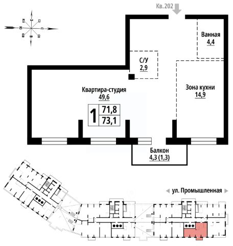 Продаётся 1-комнатная квартира в строящемся доме (Дом 10), срок сдачи: IV-кв. 2029, общей площадью 73 кв.м., на 23 этаже. Новый жилой комплекс "Родные берега" от застройщика "Жилищная Инициатива" расположен по адресу: Алтайский край, г. Барнаул, Центральный район , улица Промышленная