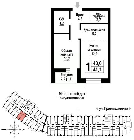Продаётся уютная однокомнатная квартира общей площадью 40.3 квадратных метров, расположенная на седьмом этаже двадцати трёхэтажного дома по адресу город Барнаул, 6-я Нагорная улица, дом 15г/12.