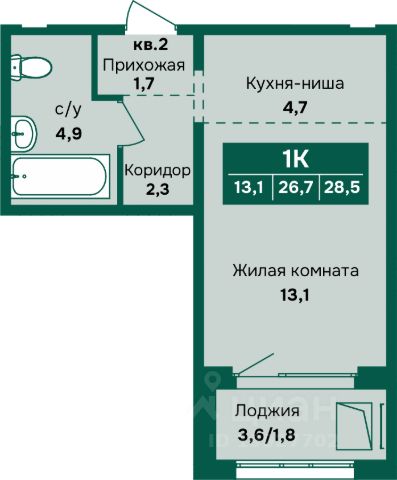 Продаётся 1-комнатная квартира в строящемся доме (Дом 3 Корпус 1), срок сдачи: III-кв. 2027, общей площадью 44.2 кв.м., на 9 этаже. Новый жилой комплекс "Спектр" от группы компаний "Алгоритм" расположен по адресу: г. Барнаул, по ул. им. Анатолия Мельникова.