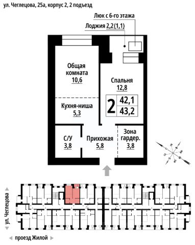 Продаётся 2-комнатная квартира в строящемся доме (Корпус 2), срок сдачи: II-кв. 2027, общей площадью 48 кв.м., на 5 этаже. ЖК "Тургенев" на ул. Чеглецова, 25а представляет из себя два кирпичных здания высотой 9 этажей. Предлагаем к покупке первый корпус, состоящий из двух подъездов. В каждом запроектированы квартиры с продуманной планировкой от 34,8-57,7 квадратных метров. Фасады выполнены в стилизованных формах с использованием остекленных лоджий и архитектурной подсветкой. Высота 1 и 9 этажа - 3 метра. На первом этаже предусмотрены нежилые помещения с гибким функциональным назначением. ЖК "Тургенев" удачно расположен в тихом районе города и в то же время имеет отличную транспортную развязку, до проспекта Ленина и улицы Северо-Западной всего 500 метров. В шаговой доступности бассейн Аврора, Краевой стрелково-спортивный центр, тренажёрный зал, парк развлечений "Солнечный Ветер", а до Юбилейного парка, где расположен скейт-парк, велодорожки, красивые места отдыха и практически ручные белки всего 650 метров. Также эта локация отличается обилием образовательных учреждений от детских садов, школ до колледжей. Купить 2-комнатную квартиру на улице Чеглецова в городе Барнаул.