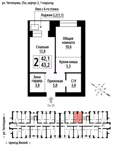 Продаётся 2-комнатная квартира в строящемся доме (Корпус 2), срок сдачи: II-кв. 2027, общей площадью 46 кв.м., на 3 этаже. ЖК "Тургенев" на ул. Чеглецова, 25а представляет из себя два кирпичных здания высотой 9 этажей. Предлагаем к покупке первый корпус, состоящий из двух подъездов. В каждом запроектированы квартиры с продуманной планировкой от 34,8-57,7 квадратных метров. Фасады выполнены в стилизованных формах с использованием остекленных лоджий и архитектурной подсветкой. Высота 1 и 9 этажа - 3 метра. На первом этаже предусмотрены нежилые помещения с гибким функциональным назначением. ЖК "Тургенев" удачно расположен в тихом районе города и в то же время имеет отличную транспортную развязку, до проспекта Ленина и улицы Северо-Западной всего 500 метров. В шаговой доступности бассейн Аврора, Краевой стрелково-спортивный центр, тренажёрный зал, парк развлечений "Солнечный Ветер", а до Юбилейного парка, где расположен скейт-парк, велодорожки, красивые места отдыха и практически ручные белки всего 650 метров. Также эта локация отличается обилием образовательных учреждений от детских садов, школ до колледжей. Купить 2-комнатную квартиру на улице Чеглецова в городе Барнаул.