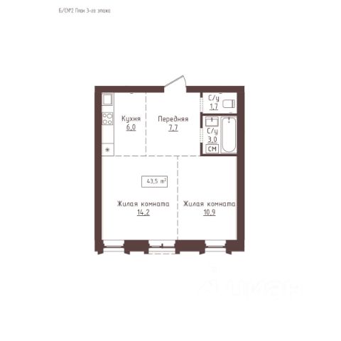 • ✅ Минимальная площадь: 43,5 м²