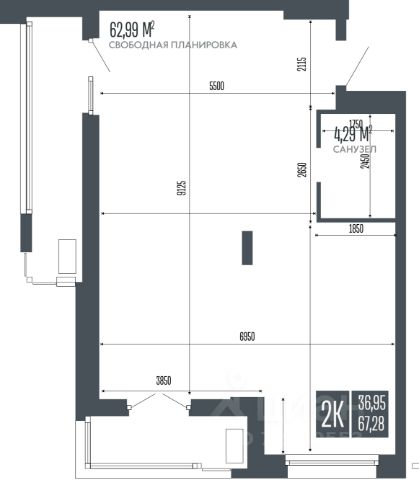 • Площадь — 63,9 м², удобная планировка