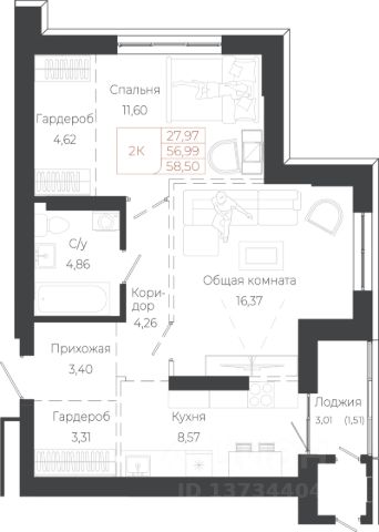 Квартира находится на втором этаже девятиэтажного монолитно-кирпичного дома. Общая площадь квартиры составляет 29,9 кв. м., из которых жилая — 15 кв. м. Удобная планировка включает просторную прихожую с нишей под шкаф, светлую гостиную с большими окнами, совмещенную с кухней-столовой, а также совмещенный санузел. Такое решение обеспечит Вам комфорт и функциональность в повседневной жизни.