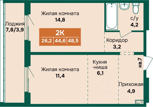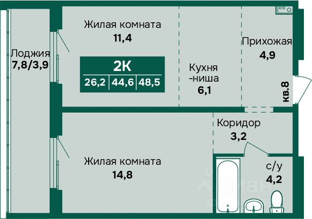 Продаётся 2-комнатная квартира в строящемся доме (Дом 1), срок сдачи: IV-кв. 2027, общей площадью 56.8 кв.м., на 13 этаже. Новый жилой комплекс "На Крупской, 100" от группы компаний "Строительная Перспектива ПСК" расположен по адресу: г. Барнаул, по ул. Крупской.