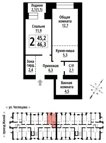 Продаётся 2-комнатная квартира в строящемся доме (1-я Западная, 55А (Дом 1)), срок сдачи: III-кв. 2026, общей площадью 56.89 кв.м., на 4 этаже. На улице Западная 1-я, 55А в городе Барнауле, располагается восьмиэтажный жилой дом с подземной автостоянкой. Фасады дома оформлены сочетанием разнообразных материалов: стекло, силикатный и бетонный кирпич. Горизонтальные линии и цвета на фасадах помогают определить этажность и масштаб здания. Использование больших форм выносных стеклянных лоджий и яркой палитры цветов придает зданию интересный внешний вид, сочетаясь гармонично с окружающей застройкой. Подвал дома содержит 34 машино-места, 3 нежилых помещения и 18 кладовых. Подвальный этаж имеет два отдельных входа с улицы и рампу для въезда на автостоянку, оборудованную автоматическими воротами. Дом предлагает разнообразные одно-, двух- и трехкомнатные квартиры, а также квартиры-студии, всего 79 штук. Планировка предусматривает по 9 квартир на первом этаже и по 10 квартир на остальных этажах. Лоджии оборудованы ограждениями высотой не менее 1,2 метра. Подземная автостоянка полностью расположена под внутренним двором. На кровле предусмотрены проезды, пешеходные тротуары, зеленые насаждения, открытая стоянка для автомобилей и игровые площадки. Высота помещения автостоянки варьируется от 2,49 м до 2,84 м, а высота подвального этажа составляет 3,15 м. Высота жилых этажей с первого по восьмой - 2,9 метра. Продается 2-комнатная квартира в новостройке в районе Октябрьский в городе Барнаул.