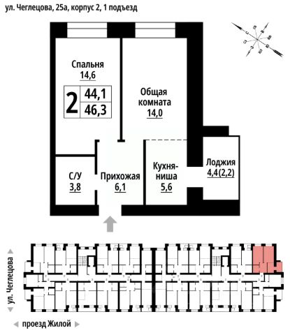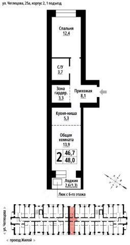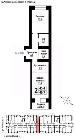 Продаётся 2-комнатная квартира в строящемся доме (Корпус 2), срок сдачи: II-кв. 2027, общей площадью 46 кв.м., на 8 этаже. ЖК "Тургенев" на ул. Чеглецова, 25а представляет из себя два кирпичных здания высотой 9 этажей. Предлагаем к покупке первый корпус, состоящий из двух подъездов. В каждом запроектированы квартиры с продуманной планировкой от 34,8-57,7 квадратных метров. Фасады выполнены в стилизованных формах с использованием остекленных лоджий и архитектурной подсветкой. Высота 1 и 9 этажа - 3 метра. На первом этаже предусмотрены нежилые помещения с гибким функциональным назначением. ЖК "Тургенев" удачно расположен в тихом районе города и в то же время имеет отличную транспортную развязку, до проспекта Ленина и улицы Северо-Западной всего 500 метров. В шаговой доступности бассейн Аврора, Краевой стрелково-спортивный центр, тренажёрный зал, парк развлечений "Солнечный Ветер", а до Юбилейного парка, где расположен скейт-парк, велодорожки, красивые места отдыха и практически ручные белки всего 650 метров. Также эта локация отличается обилием образовательных учреждений от детских садов, школ до колледжей.
