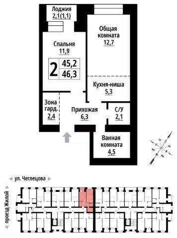 Продаётся 2-комнатная квартира в строящемся доме (Корпус 2), срок сдачи: II-кв. 2027, общей площадью 46 кв.м., на 3 этаже. ЖК "Тургенев" на ул. Чеглецова, 25а представляет из себя два кирпичных здания высотой 9 этажей. Предлагаем к покупке первый корпус, состоящий из двух подъездов. В каждом запроектированы квартиры с продуманной планировкой от 34,8-57,7 квадратных метров. Фасады выполнены в стилизованных формах с использованием остекленных лоджий и архитектурной подсветкой. Высота 1 и 9 этажа - 3 метра. На первом этаже предусмотрены нежилые помещения с гибким функциональным назначением. ЖК "Тургенев" удачно расположен в тихом районе города и в то же время имеет отличную транспортную развязку, до проспекта Ленина и улицы Северо-Западной всего 500 метров. В шаговой доступности бассейн Аврора, Краевой стрелково-спортивный центр, тренажёрный зал, парк развлечений "Солнечный Ветер", а до Юбилейного парка, где расположен скейт-парк, велодорожки, красивые места отдыха и практически ручные белки всего 650 метров. Также эта локация отличается обилием образовательных учреждений от детских садов, школ до колледжей. 2-комнатная квартира в новостройке с отделкой в Алтайском крае.