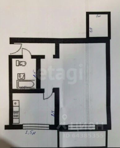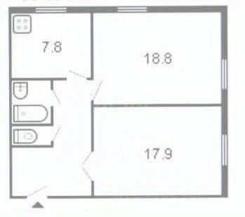 Имеется просторная спальня правильной формы с балконом, гардеробная/кладовая 1,5 кв. м. в прихожей, кухня и гостиная совмещённые, санузел раздельный.