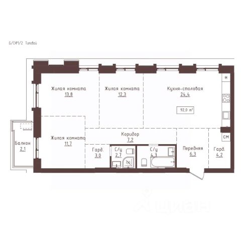 Продаётся 3-комнатная квартира в строящемся доме (Папанинцев, 155 (Блок-секция 1-2)), срок сдачи: III-кв. 2028, общей площадью 92 кв.м., на 15 этаже. Новый жилой комплекс "Империал" от группы компаний "Авангард" расположен по адресу: г. Барнаул, по ул. Папанинцев.