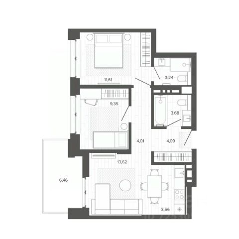 • ✅ Минимальная площадь: 41 м²
