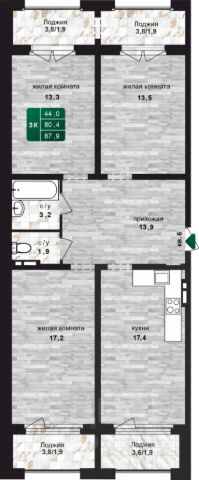 Продаётся 3-комнатная квартира в строящемся доме (Корпус 1 (БС 1,2,3)), срок сдачи: II-кв. 2026, общей площадью 80.63 кв.м., на 6 этаже. Новый жилой комплекс "Вышка зелёный квартал на горе" от группы компаний "Мой дом" расположен по адресу: г. Барнаул, по ул. Змеиногорский тракт.