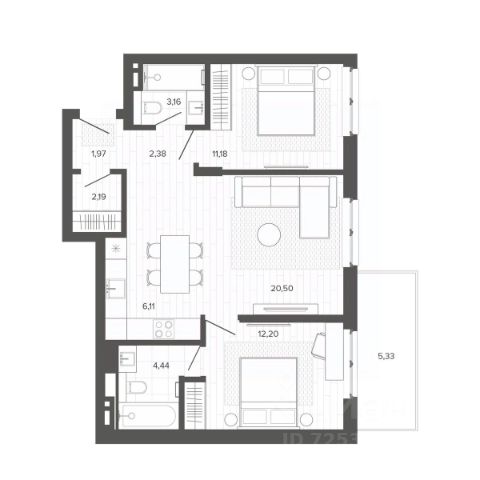 Продаётся 3-комнатная квартира в строящемся доме (Меланж), срок сдачи: IV-кв. 2026, общей площадью 70.2 кв.м., на 6 этаже. Меланж - дом рядом с парком. Эстетика городской жизни Эстетика городской жизни - значит иметь возможность слушать пение птиц, наслаждаться зеленью деревьев, заниматься спортом на свежем воздухе или отправиться на прогулку в любое время. Это не просто архитектурное решение, а отличный повод изменить свои ежедневные привычки, сделать жизнь более интересной и наполненной. Внутреннее благоустройство С помощью зданий будет сформирована закрытая территория. Это разделит пространство на общественное и частное, изолирует двор от городского шума и суеты, превратит его в безопасное и приятное место для отдыха жителей. Двор без машин, игровые площадки и зелёное зонирование - атрибуты более высокого качества жизни в домах комфорт класса. Архитектура В фасаде будут использованы благородные и "тёплые" материалы - кирпич. Это придаст зданию эстетическую привлекательность, практичность и долговечность. Архитектура дома, не только сохранит историю и традиции, но и подчеркнет его особую изысканность и индивидуальность на фоне современной застройки. Планировки для каждого Каждая планировка квартиры - тщательно продуманное решение, основанное на индивидуальных сценариях жизни будущих жильцов. Квартиры с окном в ванной, гостиная с шестиметровыми витражами или уютные апартаменты с отдельным входом направлены на формирование неповторимого образа жизни будущих владельцев недвижимости.