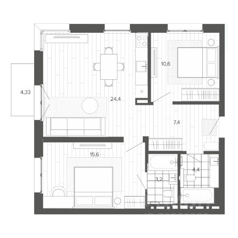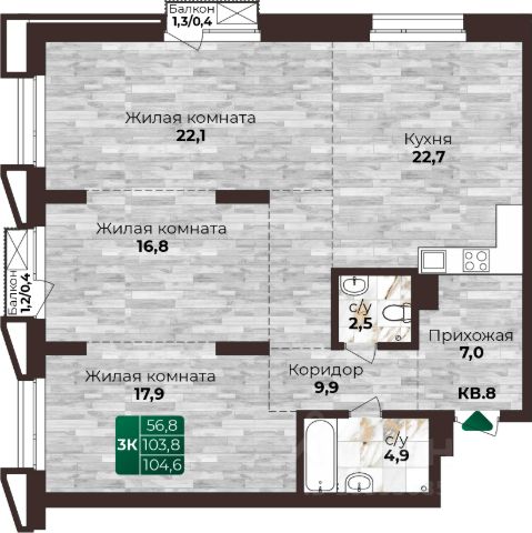 Продаётся 3-комнатная квартира в строящемся доме (Корпус 1 (БС 1,2,3)), срок сдачи: II-кв. 2026, общей площадью 70.33 кв.м., на 8 этаже. Новый жилой комплекс "Вышка зелёный квартал на горе" от группы компаний "Мой дом" расположен по адресу: г. Барнаул, по ул. Змеиногорский тракт.