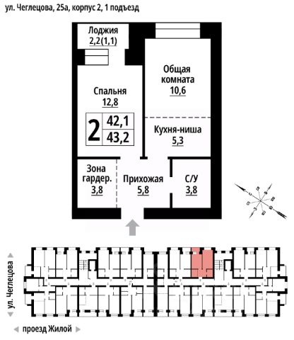 Продаётся 2-комнатная квартира в строящемся доме (Корпус 2), срок сдачи: II-кв. 2027, общей площадью 42 кв.м., на 1 этаже. ЖК "Тургенев" на ул. Чеглецова, 25а представляет из себя два кирпичных здания высотой 9 этажей. Предлагаем к покупке первый корпус, состоящий из двух подъездов. В каждом запроектированы квартиры с продуманной планировкой от 34,8-57,7 квадратных метров. Фасады выполнены в стилизованных формах с использованием остекленных лоджий и архитектурной подсветкой. Высота 1 и 9 этажа - 3 метра. На первом этаже предусмотрены нежилые помещения с гибким функциональным назначением. ЖК "Тургенев" удачно расположен в тихом районе города и в то же время имеет отличную транспортную развязку, до проспекта Ленина и улицы Северо-Западной всего 500 метров. В шаговой доступности бассейн Аврора, Краевой стрелково-спортивный центр, тренажёрный зал, парк развлечений "Солнечный Ветер", а до Юбилейного парка, где расположен скейт-парк, велодорожки, красивые места отдыха и практически ручные белки всего 650 метров. Также эта локация отличается обилием образовательных учреждений от детских садов, школ до колледжей.
