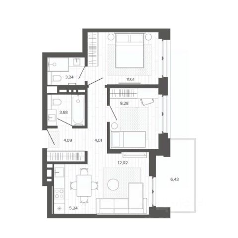 Подвал дома содержит 34 машино-места, 3 нежилых помещения и 18 кладовых. Подвальный этаж имеет два отдельных входа с улицы и рампу для въезда на автостоянку, оборудованную автоматическими воротами. Дом предлагает разнообразные одно-, двух- и трехкомнатные квартиры, а также квартиры-студии, всего 79 штук. Планировка предусматривает по 9 квартир на первом этаже и по 10 квартир на остальных этажах. Лоджии оборудованы ограждениями высотой не менее 1,2 метра.