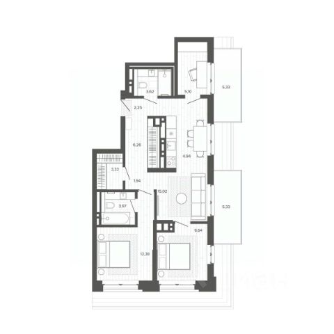 Подземная автостоянка полностью расположена под внутренним двором. На кровле предусмотрены проезды, пешеходные тротуары, зеленые насаждения, открытая стоянка для автомобилей и игровые площадки. Высота помещения автостоянки варьируется от 2,49 м до 2,84 м, а высота подвального этажа составляет 3,15 м. Высота жилых этажей с первого по восьмой - 2,9 метра. 3-комнатная квартира в новостройке в районе Октябрьский в городе Барнаул.