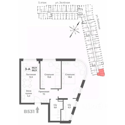 Продаётся студия на 5 этаже, в строящемся доме, срок сдачи: 2-кв. 2026 г.