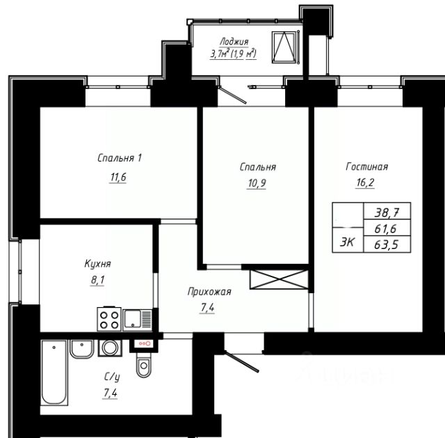Продаётся 3-комнатная квартира в строящемся доме (Дом 118д), срок сдачи: I-кв. 2027, общей площадью 61.5 кв.м., на 11 этаже. Новый жилой комплекс "Чайка" от Специализированного застройщика "ДС-Инвестстрой" расположен по адресу: г. Барнаул, по ул. Юрина.