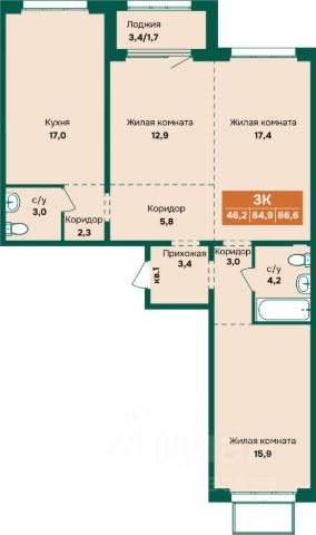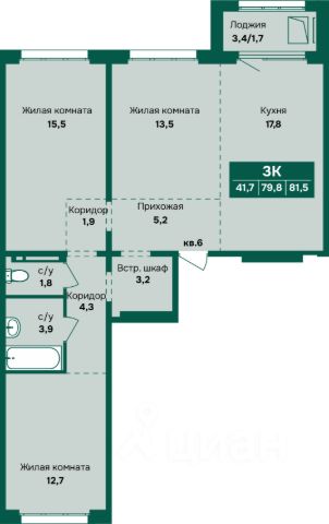 Продаётся 3-комнатная квартира в строящемся доме (Дом 3 Корпус 2), срок сдачи: III-кв. 2027, общей площадью 69.8 кв.м., на 1 этаже. Новый жилой комплекс "Спектр" от группы компаний "Алгоритм" расположен по адресу: г. Барнаул, по ул. им. Анатолия Мельникова.