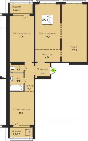 Продам уютную, светлую евротрешку в современном ЖК Шoтландия!