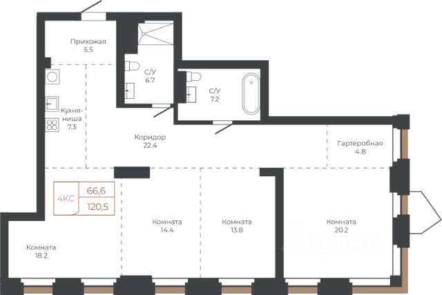 Продаётся 4-комнатная квартира в строящемся доме (Башня "Мира" (Корпус 2)), срок сдачи: I-кв. 2030, общей площадью 129.6 кв.м., на 8 этаже. Две башни формируют принципиально новое городское life-style пространство для жителеи и горожан. Единыи ансамбль площади Баварина и набережнои станет новым городским центром. АРХИТЕКТУРНЫЙ КОМПЛЕКС СТАНЕТ СИМВОЛИЧЕСКИМИ ВОРОТАМИ В ГОРОД И ЕГО ВИЗИТНОИ КАРТОЧКОИ И ОТРАЗИТ РАЗВИТИЕ БАРНАУЛА. Инфраструктура и расположение ТЕРРИТОРИЯ КОМПЛЕКСА - ВАЖНАЯ ТОЧКА, СВЯЗЫВАЮЩАЯ ДЕЛОВОИ И КУЛЬТУРНЫИ ЦЕНТРЫ БАРНАУЛА. БАШНИ ЗАМЫКАЮТ СТВОР УЛИЦЫ ЛЕНИНА И СЛУЖАТ ГОРОДСКИМИ ВОРОТАМИ НА НАБЕРЕЖНУЮ. Башни "Столица" и "Мира" будут буквально парить в воздухе у набережной. Дома установят на стилобат - платформу до высоты третьего этажа. Решение даст возможность пересекать территорию насквозь через комплекс к реке. Башни создают новые пешеходные связи со стороны улицы Ленина к набережнои.