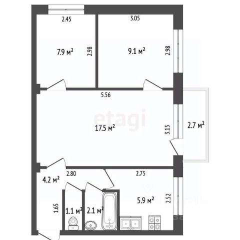 95 556 ₽/м²