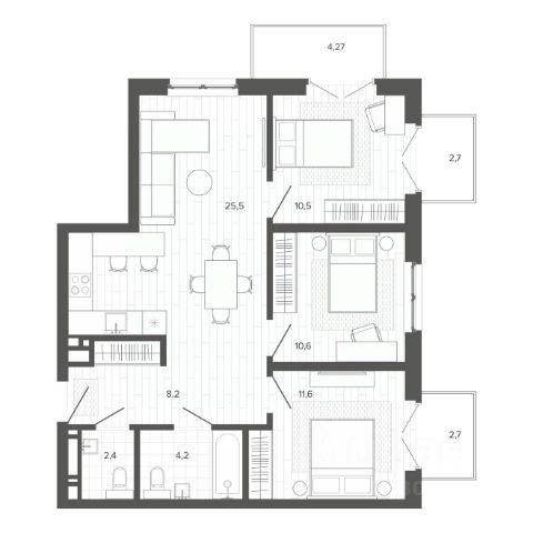 Общая площaдь квaртиpы — 90,7 м²