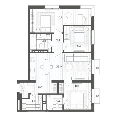 Продаётся 4-комнатная квартира в строящемся доме (Меланж), срок сдачи: IV-кв. 2026, общей площадью 85.56 кв.м., на 9 этаже. Меланж - дом рядом с парком. Эстетика городской жизни Эстетика городской жизни - значит иметь возможность слушать пение птиц, наслаждаться зеленью деревьев, заниматься спортом на свежем воздухе или отправиться на прогулку в любое время. Это не просто архитектурное решение, а отличный повод изменить свои ежедневные привычки, сделать жизнь более интересной и наполненной. Внутреннее благоустройство С помощью зданий будет сформирована закрытая территория. Это разделит пространство на общественное и частное, изолирует двор от городского шума и суеты, превратит его в безопасное и приятное место для отдыха жителей. Двор без машин, игровые площадки и зелёное зонирование - атрибуты более высокого качества жизни в домах комфорт класса. Архитектура В фасаде будут использованы благородные и "тёплые" материалы - кирпич. Это придаст зданию эстетическую привлекательность, практичность и долговечность. Архитектура дома, не только сохранит историю и традиции, но и подчеркнет его особую изысканность и индивидуальность на фоне современной застройки. Планировки для каждого Каждая планировка квартиры - тщательно продуманное решение, основанное на индивидуальных сценариях жизни будущих жильцов. Квартиры с окном в ванной, гостиная с шестиметровыми витражами или уютные апартаменты с отдельным входом направлены на формирование неповторимого образа жизни будущих владельцев недвижимости.