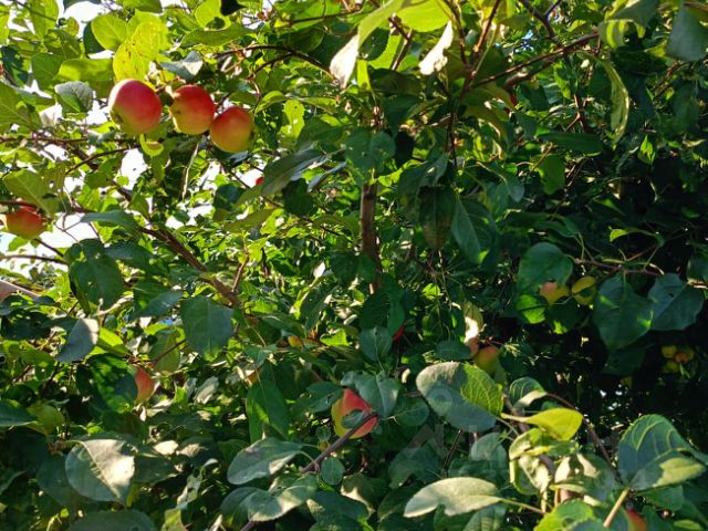 8) Газон отделен от огорода шпалерой клематисов. Окружен клумбами многолетних цветов, здесь растут яблони, вишня, розы, деревья калины-бульдонеж, гортензии, 2 голубые ели и туя. Всё цветёт, сменяя друг друга весь тёплый сезон. Установлены качели.