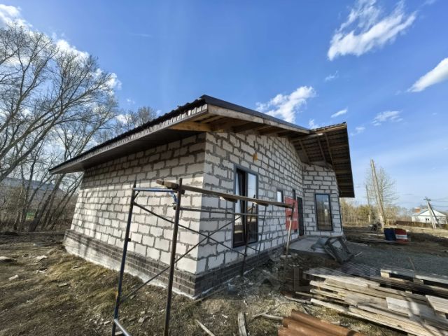 Дом состоящий из 3 комнат, утеплен каменной ватой Технониколь-100мм, обшит листом, кровля из металлопрофиля.