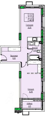 Продаётся 1-комнатная квартира в строящемся доме (Дом 1), срок сдачи: II-кв. 2029, общей площадью 29.16 кв.м., на 7 этаже. 10-ти этажный жилой дом в г. Заринске по адресу пр-т. Строителей, 29в. Проектом предлагается 3-х подъездный, 10-ти этажный жилой дом с встроенными на первом этаже помещениями общественного назначения. Исходя из ориентации дома входы в подъезды предусмотрены со стороны двора, тогда как в нежилые помещения - со стороны пр-т. Строителей. Вокруг здания предусматривается круговой проезд для автомобильного транспорта. Парковки для постоянного, временного хранения автомобилей, а также парковки для нежилых помещений предусмотрены, при этом согласно нормативам градостроительного проектирования Алтайского края от 29.12.2022 N 537, машино-мест может располагаться на прилегающей территории более 90 штук. Детские, спортивные площадки запроектированы с учетом нормативных расстояний от жилья и парковок. В жилом доме предусмотрено 222 квартир в том числе: Студии - 841-комн. - 482-х комн. - 543-х комн. - 304-х комн. - 6Имеется возможность объединения квартир для увеличения площади. Высота первого этажа - 3,6 м, жилых этажей - 3 м. В подвале предусмотрены кладовые для хранения негорючих вещей жильцов. В каждом подъезде имеется лестничная клетка и два лифта - пассажирский грузоподъемностью 400 кг и грузопассажирский грузоподъемностью 630 кг. Практически каждая квартира имеет выход на просторную застекленную лоджию площадью 6-9 кв.м. Все окна увеличенной высоты, что обеспечивает максимальное дневное освещение квартир. Часть квартир дополнительно оборудована мастер спальнями и гардеробными. Конструктивная схема монолитный железобетонный каркас с заполнением кирпичом и газобетоном с утеплителем. Облицовка 1-2 этажей клинкерным кирпичом. Выше штукатурка по стене. Окна - из металлопластика. Витражи 1-го этажа, остекления балконов - алюминиевые. Прилегающая территория к дому комплексно благоустраивается с асфальтированием проездов, озеленением и тротуарной плиткой. Площадки для игр детей и занятия спортом укомплектовываются элементами заводского изготовления. Жилой дом после строительства украсит центральную часть г. Заринска.