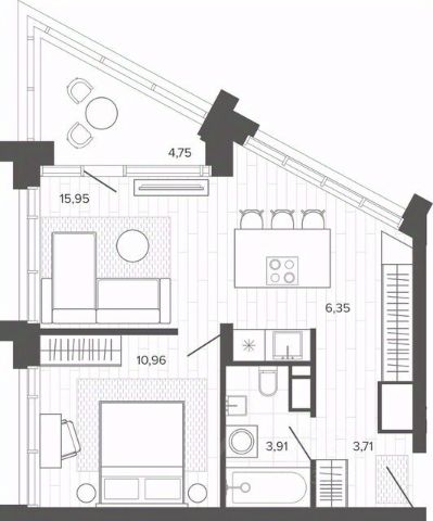 -Общая площадь- 35,1м? (без учёта лоджии)