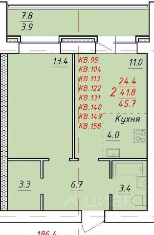 • ✅ Минимальная площадь: 21,7 м²