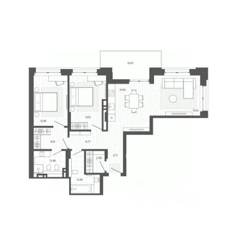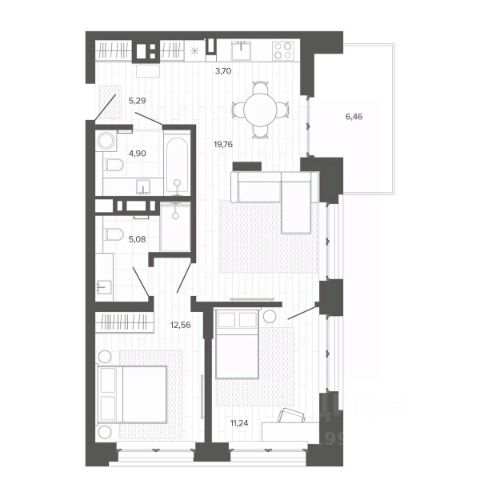 Продаётся 2-комнатная квартира в строящемся доме (Дом 1), срок сдачи: III-кв. 2026, общей площадью 56.89 кв.м., на 7 этаже. На улице Западная 1-я, 55А в городе Барнауле, располагается восьмиэтажный жилой дом с подземной автостоянкой. Фасады дома оформлены сочетанием разнообразных материалов: стекло, силикатный и бетонный кирпич. Горизонтальные линии и цвета на фасадах помогают определить этажность и масштаб здания. Использование больших форм выносных стеклянных лоджий и яркой палитры цветов придает зданию интересный внешний вид, сочетаясь гармонично с окружающей застройкой. Подвал дома содержит 34 машино-места, 3 нежилых помещения и 18 кладовых. Подвальный этаж имеет два отдельных входа с улицы и рампу для въезда на автостоянку, оборудованную автоматическими воротами. Дом предлагает разнообразные одно-, двух- и трехкомнатные квартиры, а также квартиры-студии, всего 79 штук. Планировка предусматривает по 9 квартир на первом этаже и по 10 квартир на остальных этажах. Лоджии оборудованы ограждениями высотой не менее 1,2 метра. Подземная автостоянка полностью расположена под внутренним двором. На кровле предусмотрены проезды, пешеходные тротуары, зеленые насаждения, открытая стоянка для автомобилей и игровые площадки. Высота помещения автостоянки варьируется от 2,49 м до 2,84 м, а высота подвального этажа составляет 3,15 м. Высота жилых этажей с первого по восьмой - 2,9 метра.