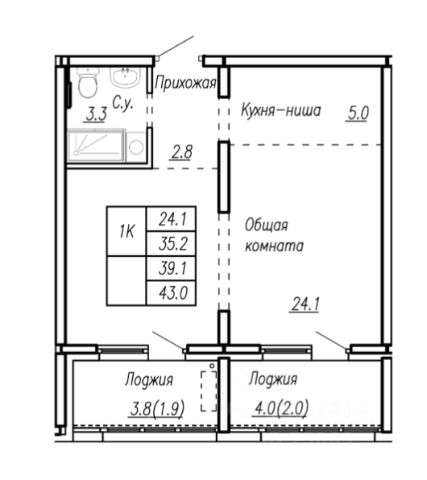 - Большая застекленная лоджия