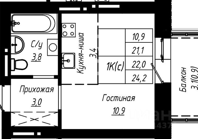 • ✅ Минимальная площадь: 24,1 м²