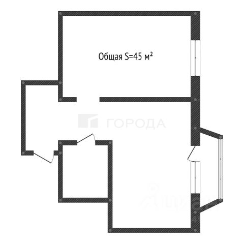 Общая площадь: 45 м² (жилая — 31.3 м², кухня — 6 м²).
