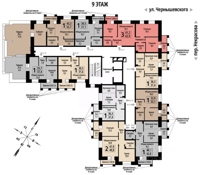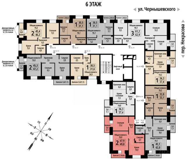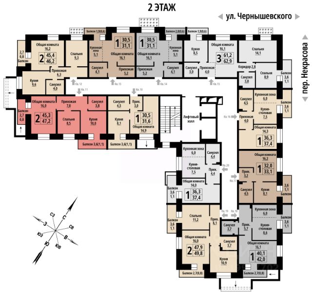 Продаётся 2-комнатная квартира в строящемся доме (Чернышевского, 39 (Дом 1)), срок сдачи: IV-кв. 2027, общей площадью 46 кв.м., на 7 этаже. Новый жилой комплекс от группы компаний "Жилищная Инициатива" расположен по адресу: г. Барнаул, по ул. Чернышевского.