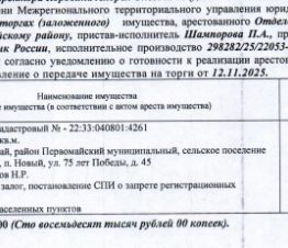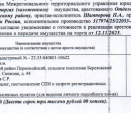 Лот10 Земельный участок, назначение земли населенных пунктов для ведения личного подсобного хозяйства, кадастровый 22:33:040801:10622, площадь 800+/-9,9 кв.м., адрес: Алтайский край, муниципальный район Первомайский, сельское...