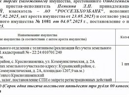 Данные в объявлении обновляются раз в сутки. Подробные параметры объекта, актуальные данные и НДС посмотрите на сайте электронных торгов.