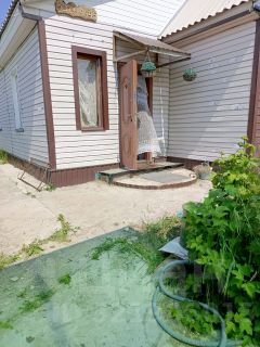 Хоз.постройки новые,гараж,баня,беседка,огород 8 соток,сад(яблони,вишня,смородина,крыжовник ),новая крыша,дом построен из бетонных плит,летом в жару очень комфортно!