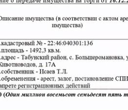 Нежилое здание-животноводческая ферма, 1970 г.п., кадастровый 22:46:040301:136, площадь 1492,3 кв.м., адрес: Алтайский край, Табунский район, с. Большеромановка, ул. Животноводов, д. 17А. Начальная цена 1 593 750 руб. (Исаев Т....