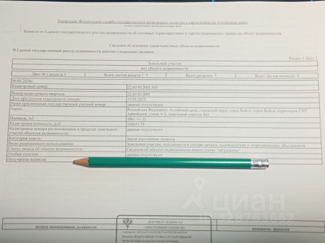Ровный, чистый участок в центре, в шаговой доступности магазины, больница, школа. До асфальтированной дороги 100 метров. Соседи хорошие. Вода свет по улице идёт, газ заведен на участок. Залит фундамент 7 на 8 так же имеются арболитовые блоки 25 кубов хватит на дом 49кв.м.(цена 170 т.р. за блоки)обмен по предложению
