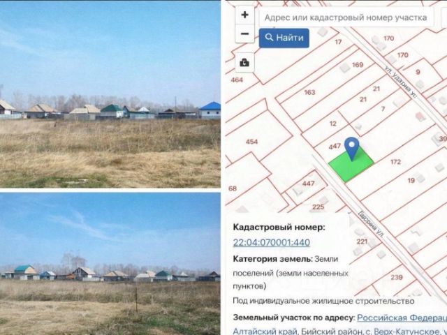 Арт. 129657007 Продается земельный участок под строительство дома!!! Расположен в с. Верх-Катунское, ул. Чуйская. Площадь участка: 13 соток. Назначение участка: земли населенных пунктов. Вид разрешенного использования: ИЖС. Участок правильной прямоугольной формы. На участке: свет подведен к участку, газ проходит по краю участка. Участок хорошо расположен, до центра села 10 мин ходьбы. Инфраструктура села хорошо развита, имеется: среднеобразовательная школа (до 11 класса); детский сад; ФАП, сетевые магазины "Монетка", "Мария-Ра"; почта России; "Озон", "Вайлдбериз". Без долгов и обременений, быстрый выход на сделку. Участок ждет Вас! Звоните по всем интересующим Вас вопросам!