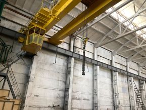 В двух пролетах установлено по две кран-балки г. п. 10 т. Всего 4 кран-балки. Два пролета без подкрановых путей.